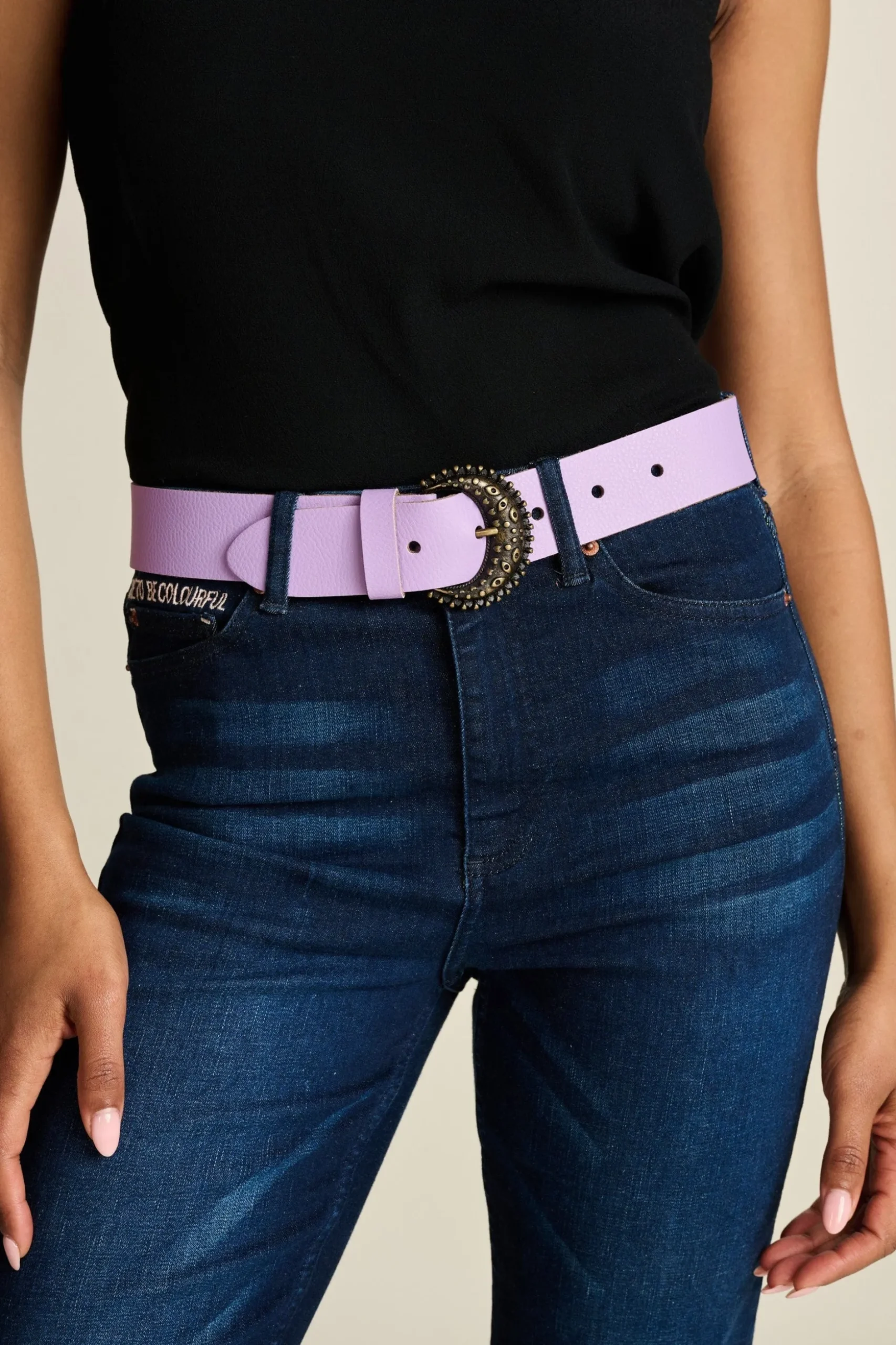 De riem is 4 cm breed. De riem is verkrijgbaar in 3 lengtes: 75 cm (maat 34/36), 85 cm (maat 38/40) en 95 cm (maat 42/44). De lengte van de riem wordt gemeten tot het middelste gaatje.