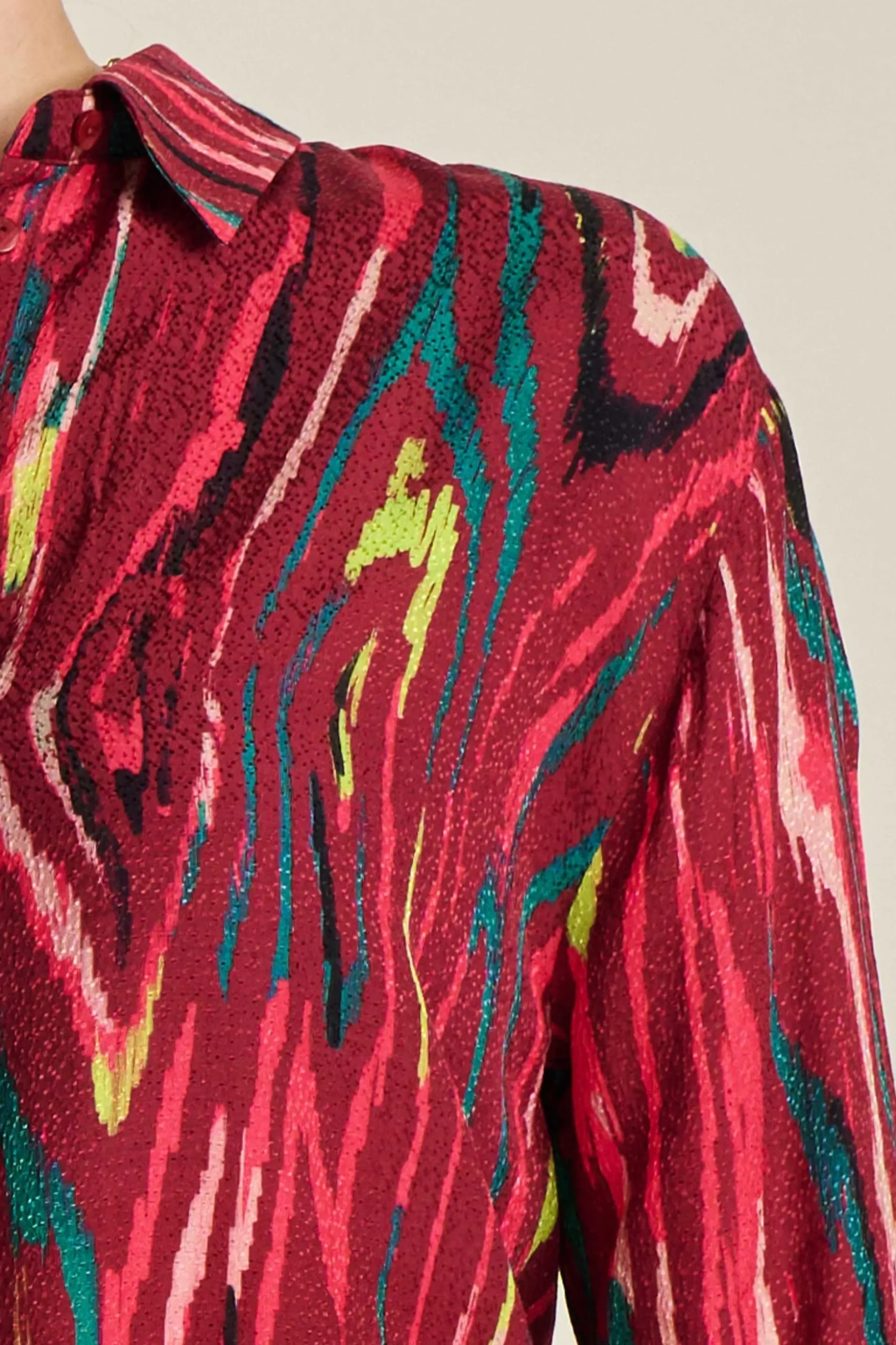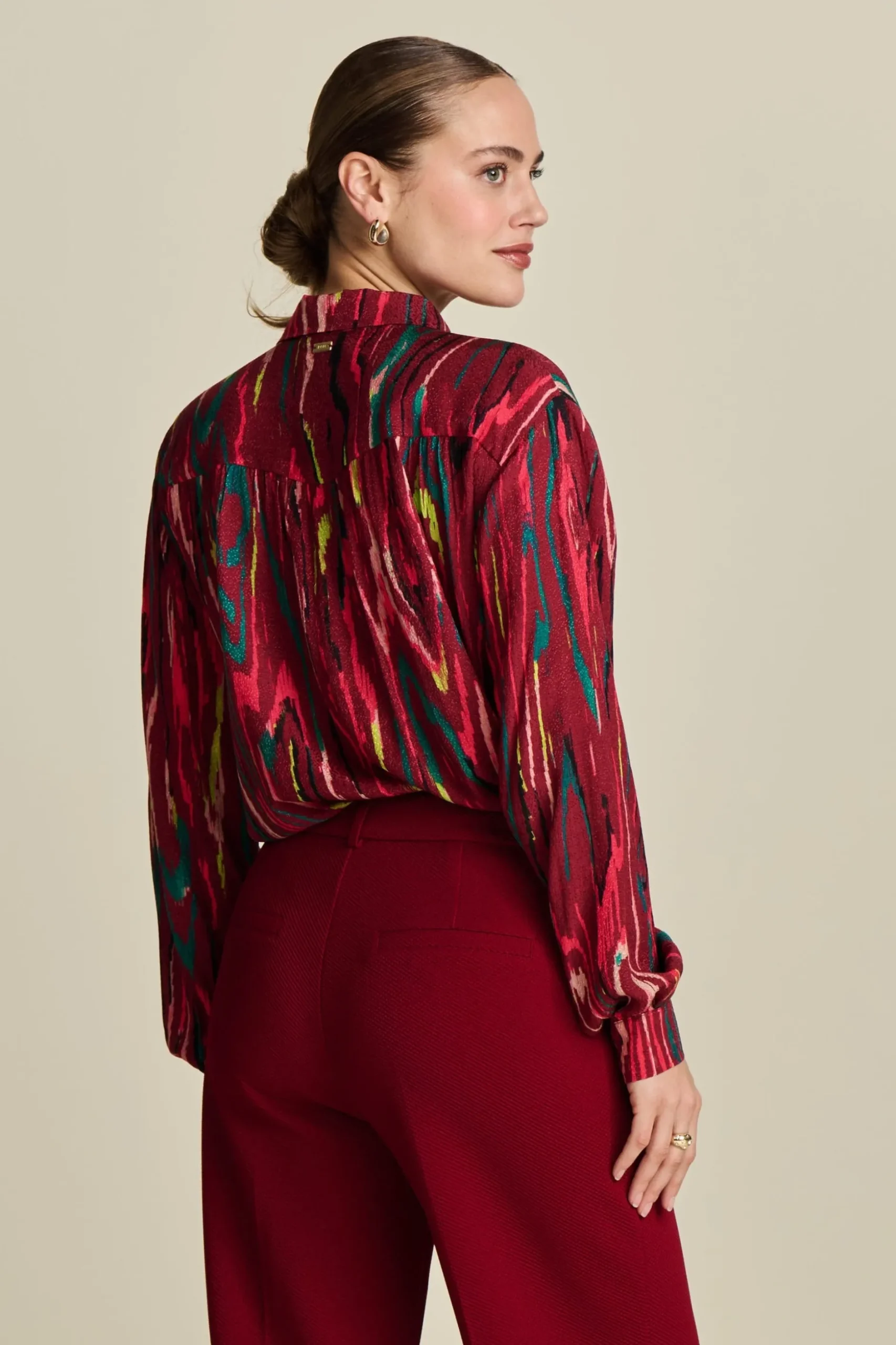 Pasvorm: De blouse heeft een wijde fit en heeft lange mouwen. Het model op de foto is 170 cm lang en draagt maat 36.