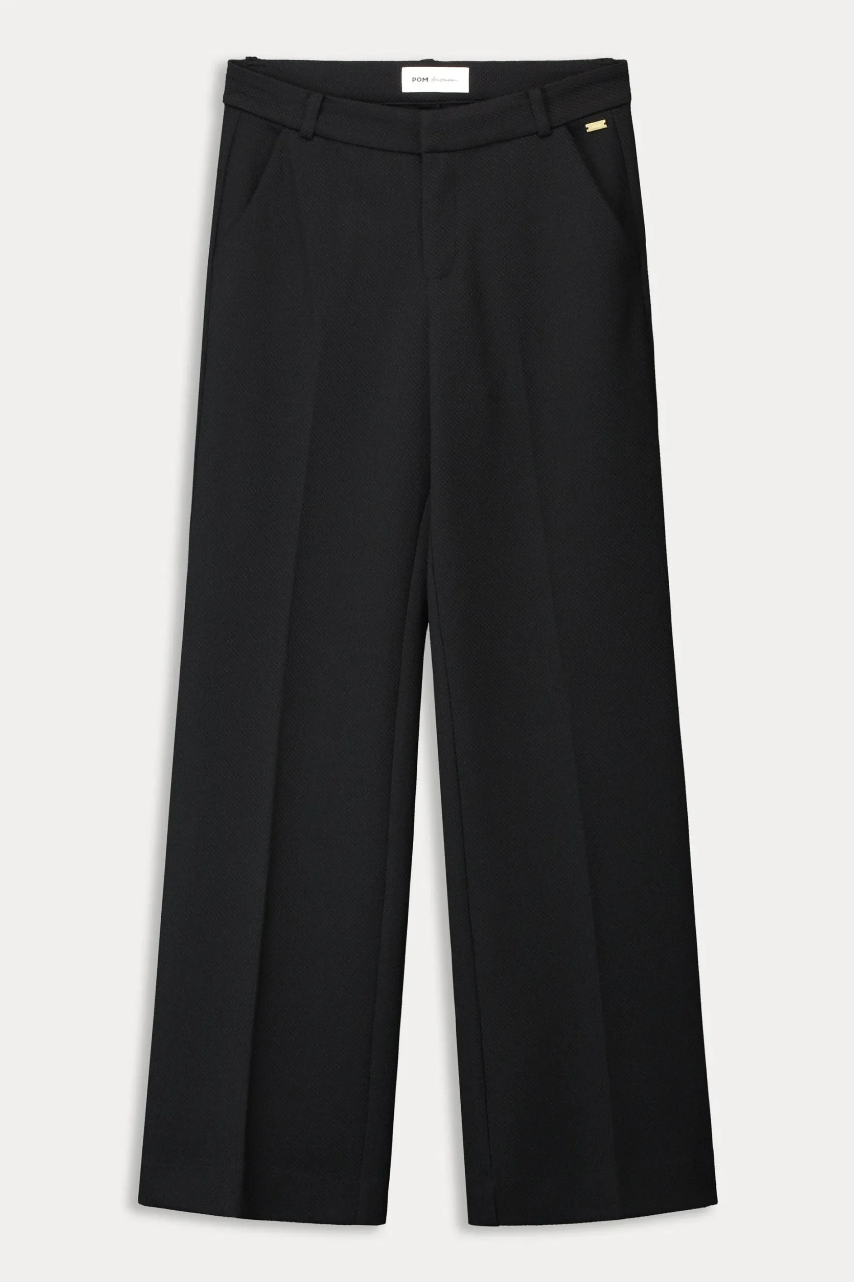 Pasvorm: De broek heeft een aansluitende waistband en wijde pijpen. Het model op de foto is 177 cm lang en draagt maat 36.