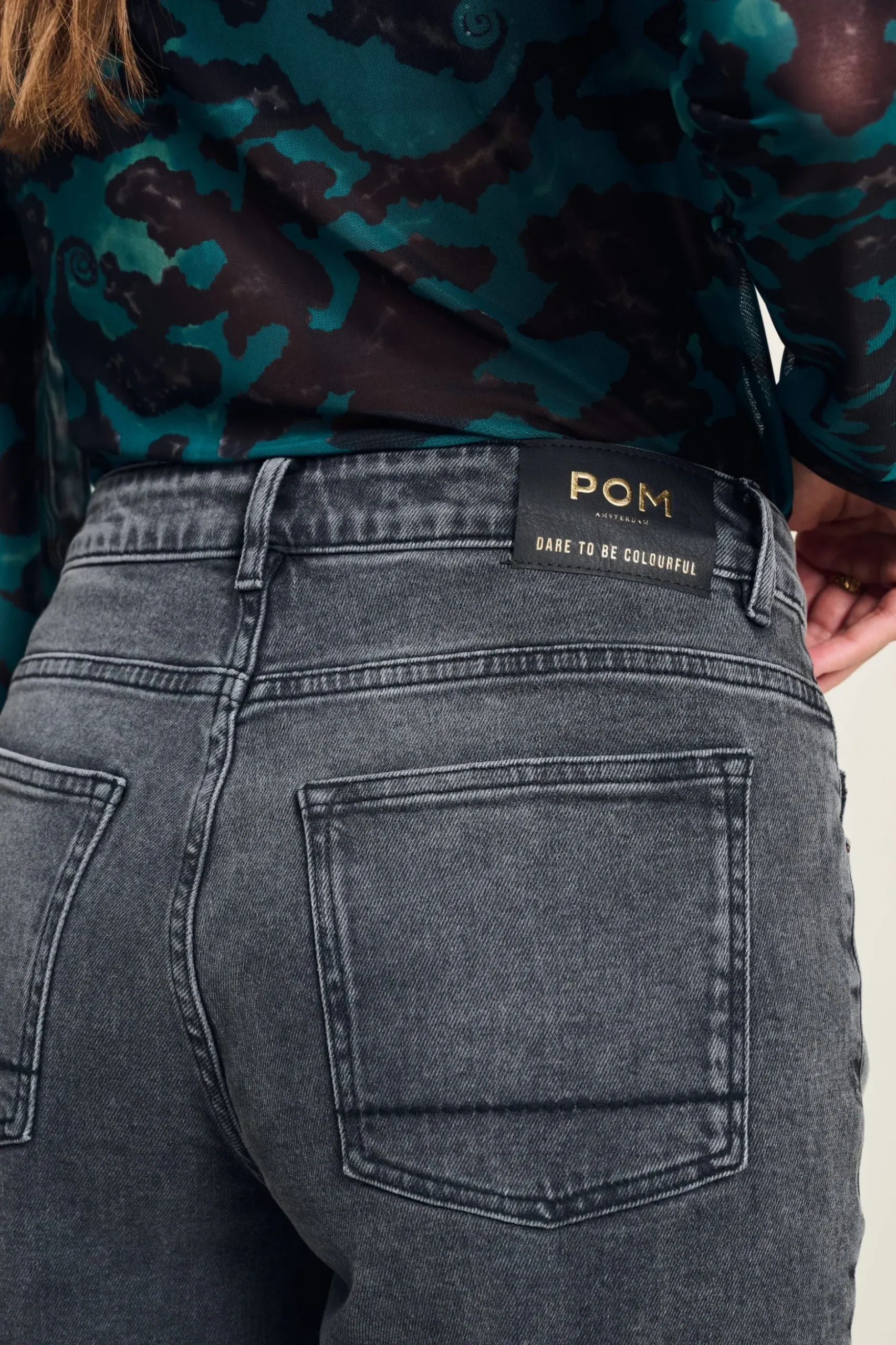 De Wide leg Grey Storm is een must-have Essential! Deze donkergrijze jeans heeft een stoer en wijd model dat vanaf de taille recht naar beneden loopt. De jeans heeft zowel aan de voorkant als aan de achterkant steekzakken. Wide Leg Grey Storm is gemaakt van organisch katoen en is daaom een ‘more sustainable’ item. De broek heeft leuke details zoals de tekst ‘Dare to be colourful’ aan de voorkant van de steekzak. Stijl de broek af met een van onze kleurrijke riemen! Pasvorm: De broek heeft een wijde fit en valt recht. De broek heeft een binnenbeenlengte van 82 cm. Het model op de foto is 175 cm lang en draagt maat 36.