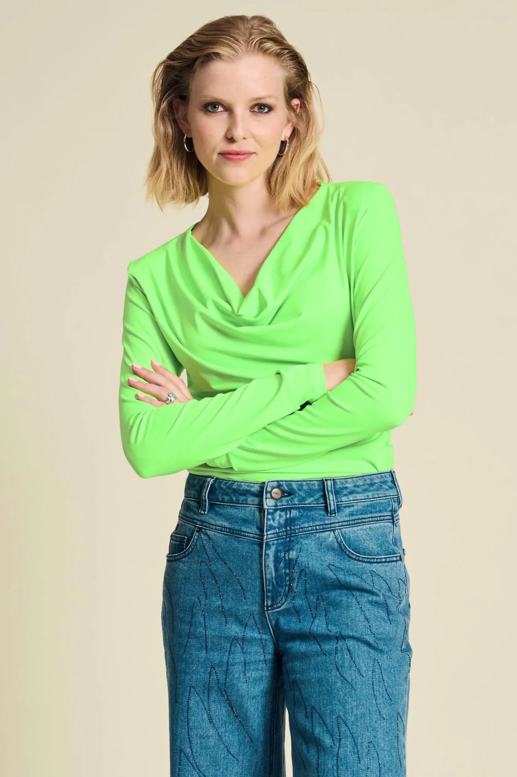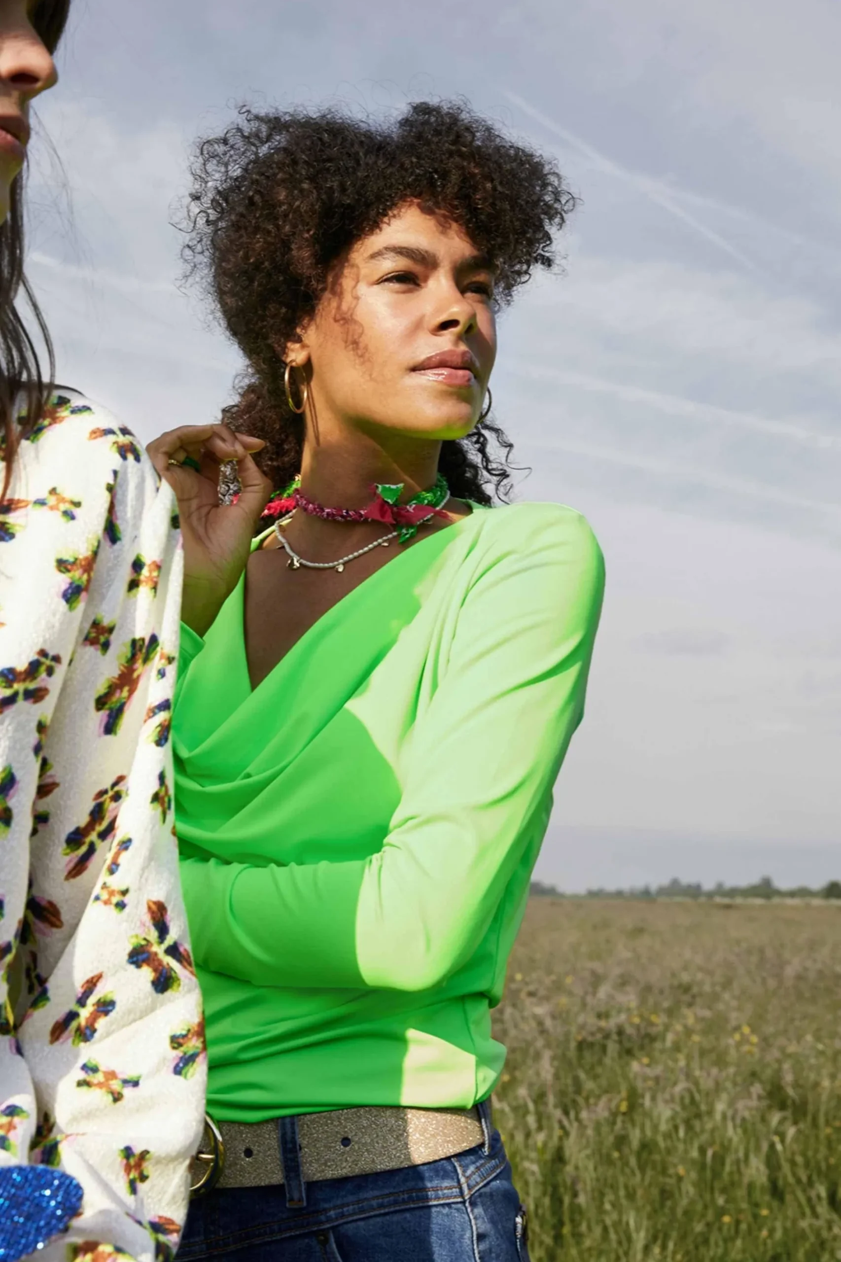 Pasvorm: De top valt aansluitend heeft lange mouwen. Het model op de foto is 177 cm lang en draagt maat 36.