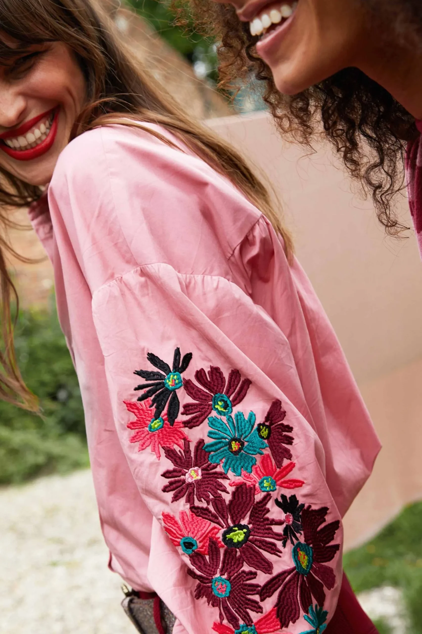 • Geborduurde bloemenprint op de mouwen