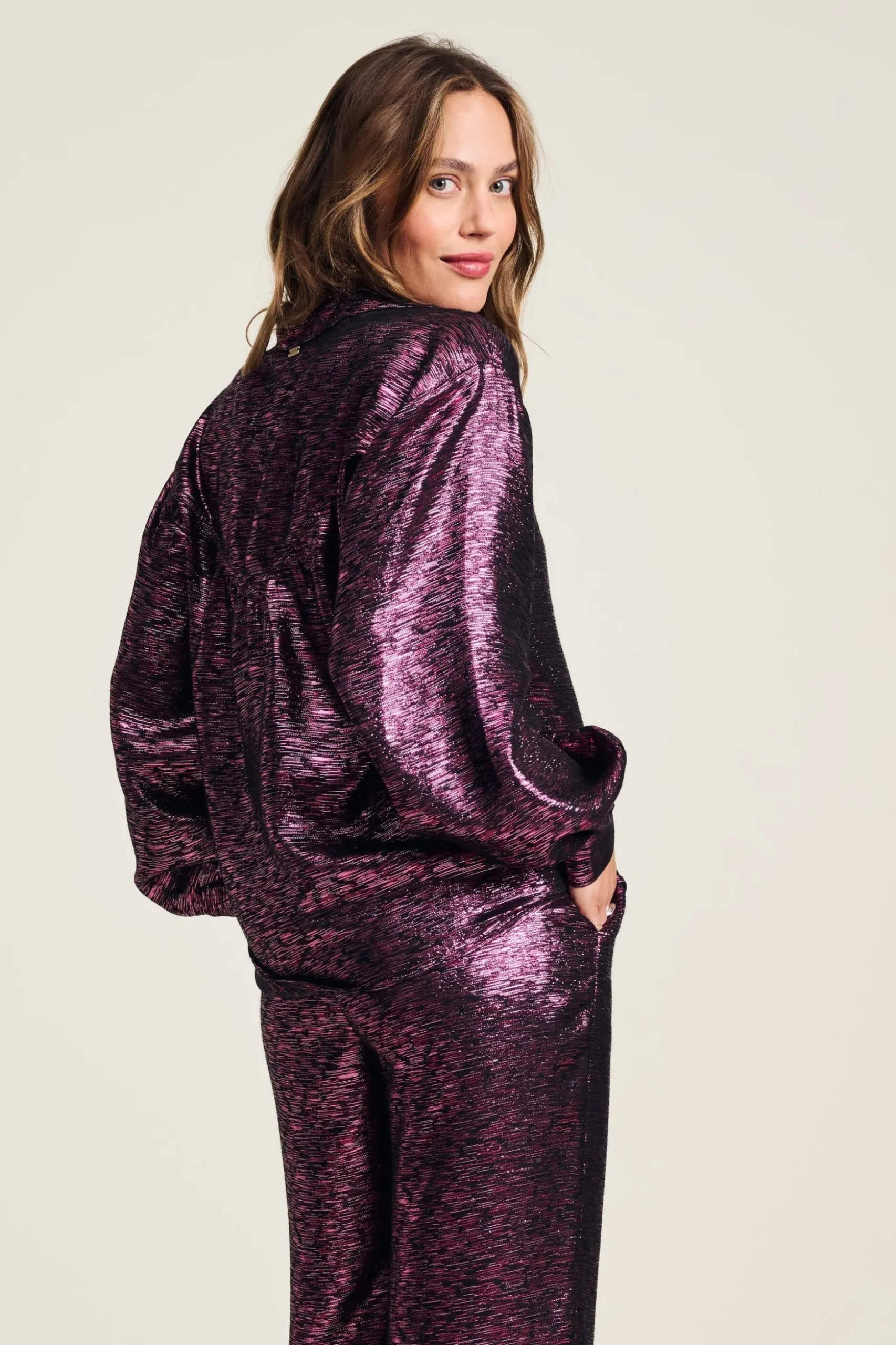 Pasvorm: De blouse valt wijd en heeft lange mouwen. Het model op de foto is 170 cm lang en draagt maat 36.