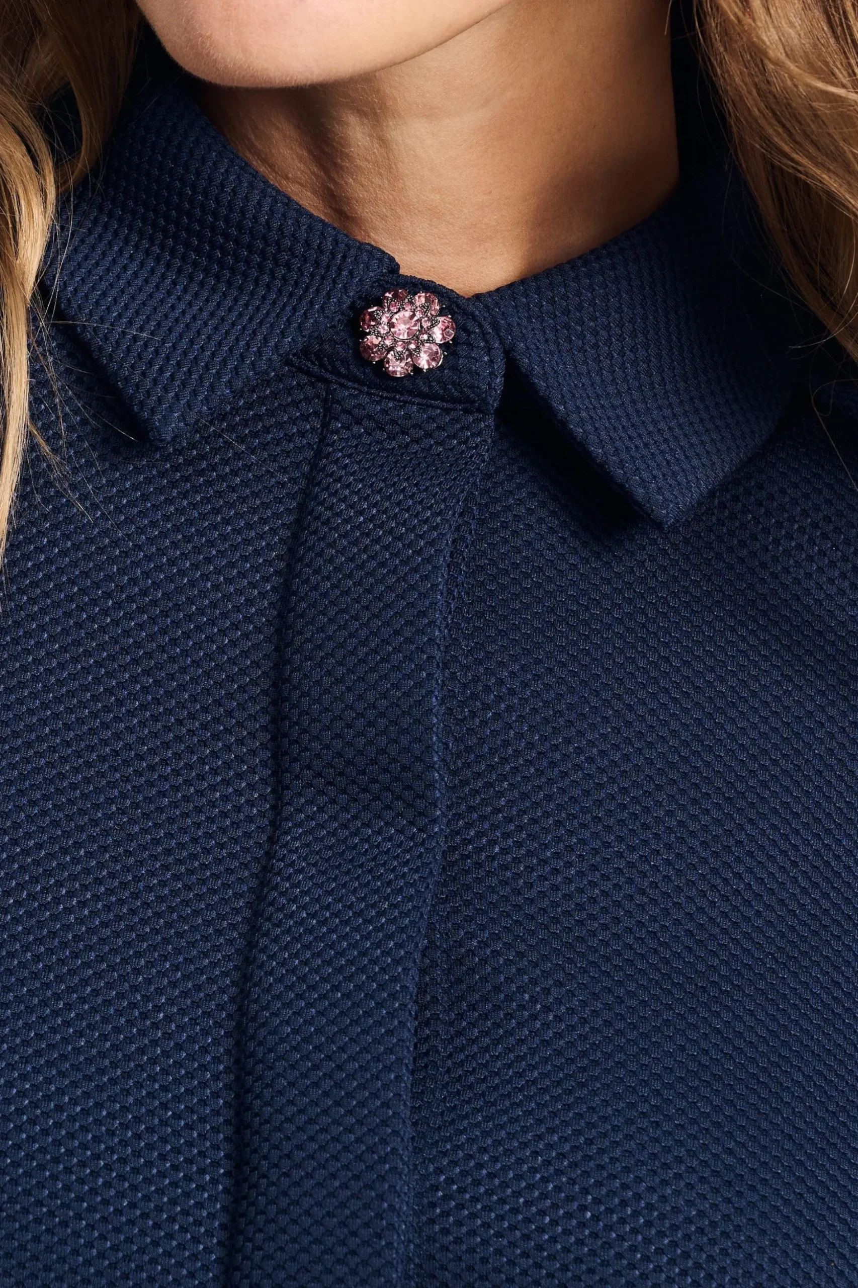 • Roze crystal knopen op de manchetten en kraag