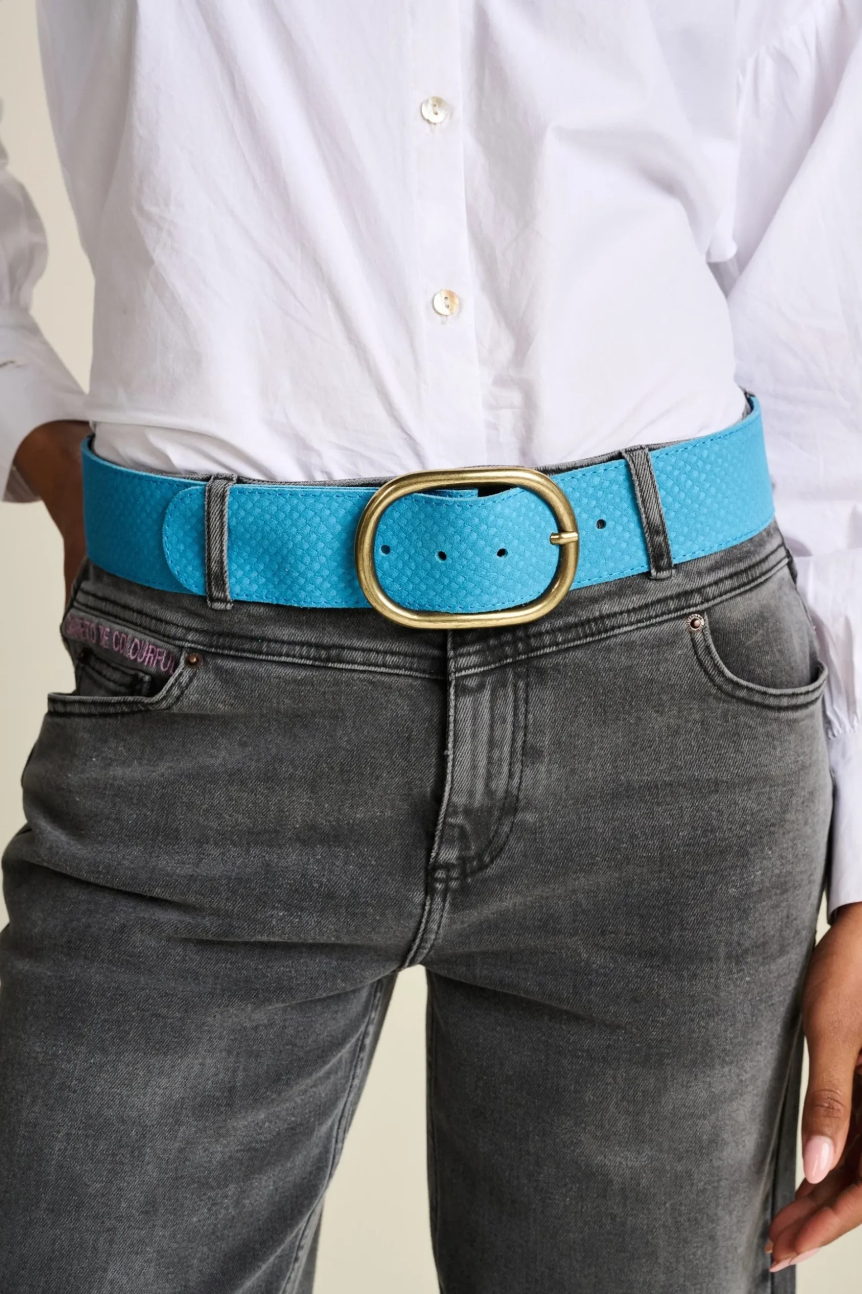 De riem is 4,8cm breed. De riem is verkrijgbaar in 3 lengtes: 75cm (maat 34/36), 85 cm (maat 38/40) en 95 cm (maat 42/44). De lengte van de riem wordt gemeten tot het middelste gaatje.