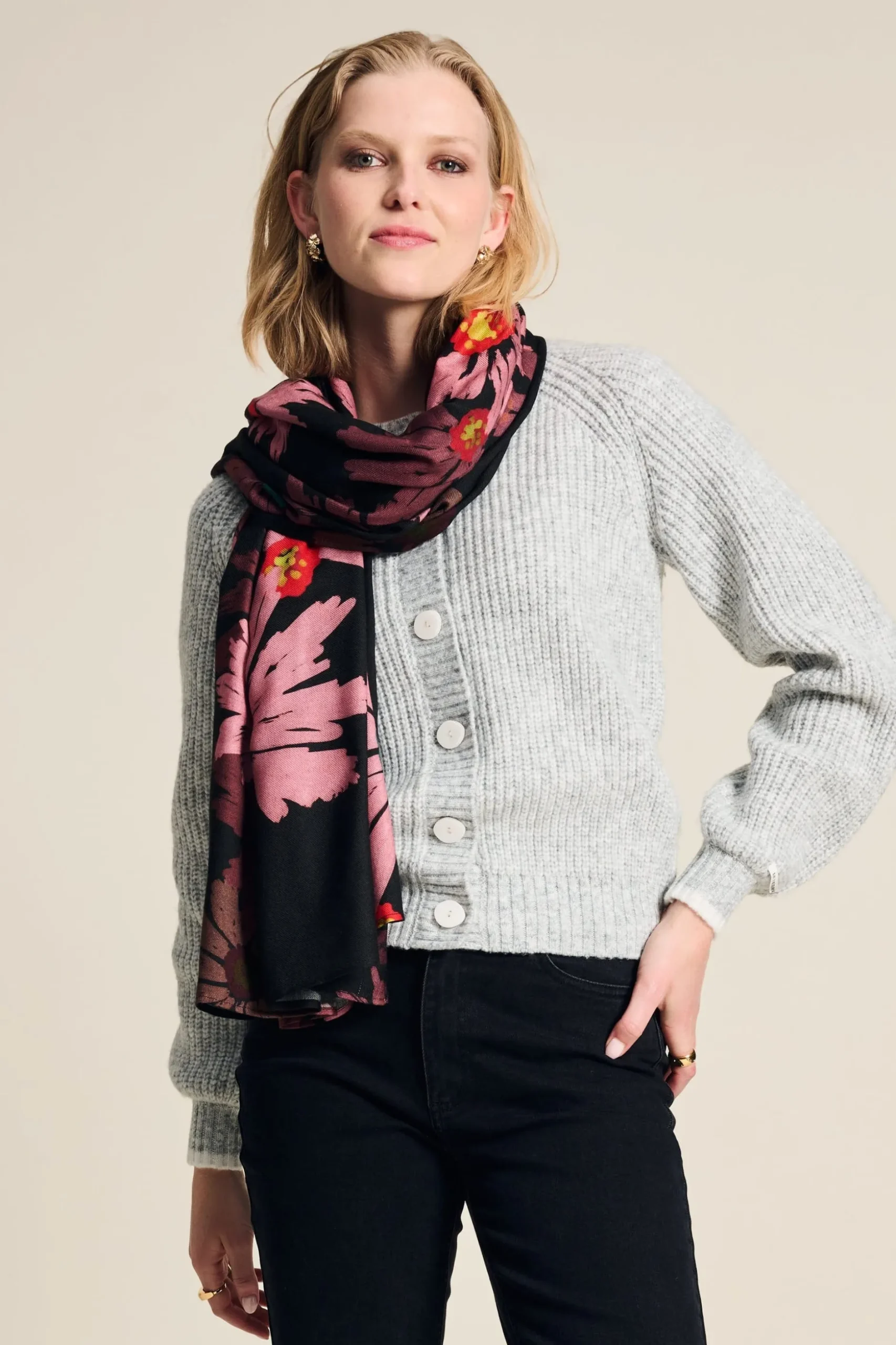 Deze roze sjaal heeft een prachtige bloemenprint, perfect om je outfit op te fleuren! De stof is more sustainable door de birla gecertificeerde modal.