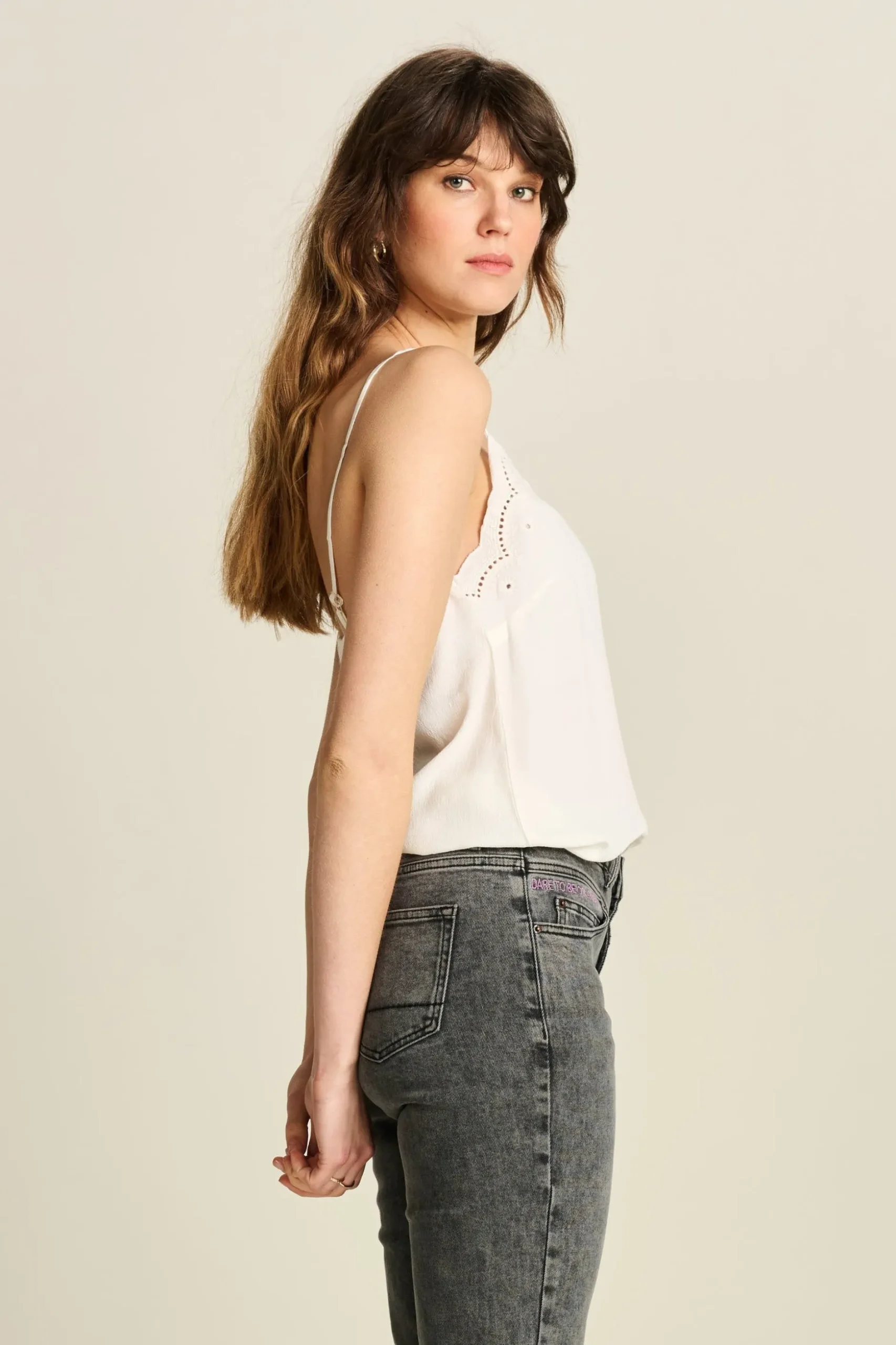 De top heeft een losse pasvorm.